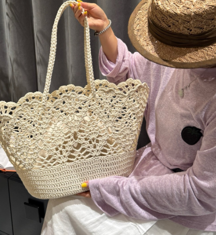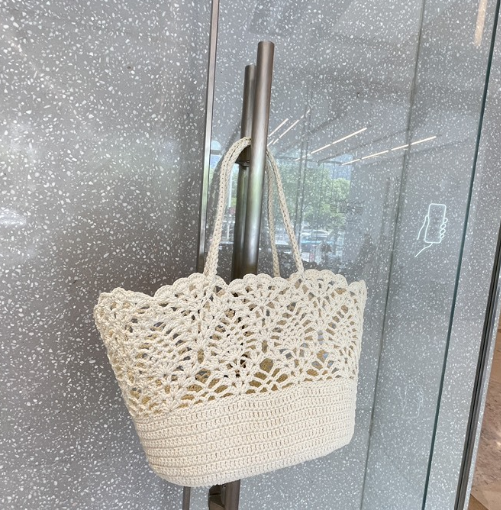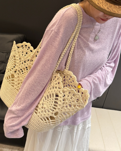 Handmade Cotton Woven Shoulder Bag with Hollow Flower Design