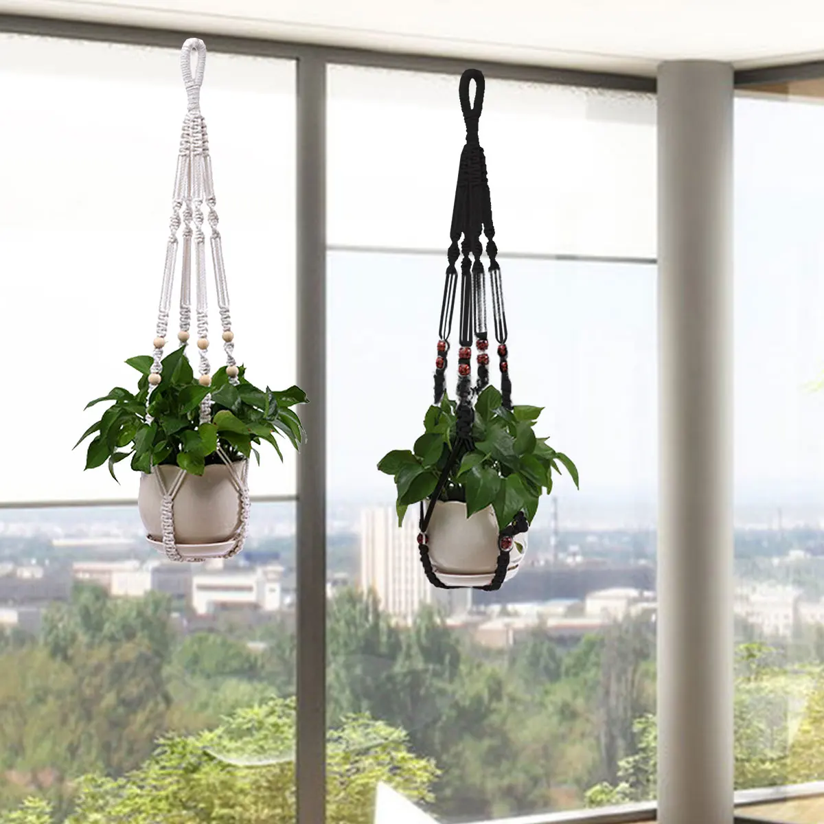 【High-quality Materials】 Our indoor hanging flowerpot net bag is made of natural cotton rope and handmade wooden beads. It is carefully hand-made, odorless, strong and durable enough to hang various plants, such as ivy, silk plants and more. A great way to show your cute plants is also a unique bohemian wall hanging decoration.